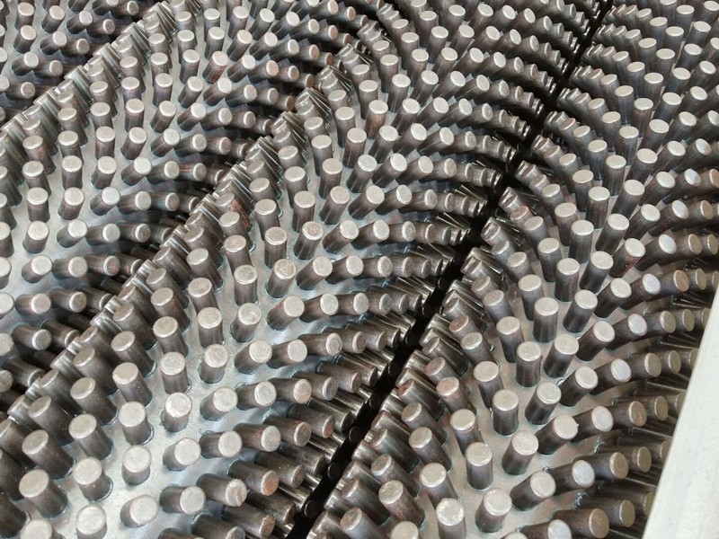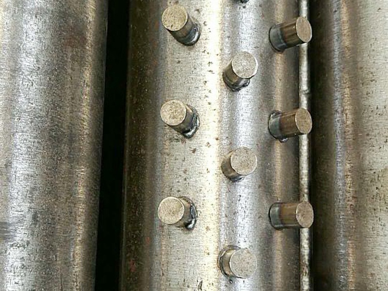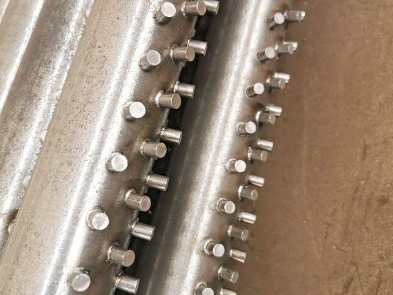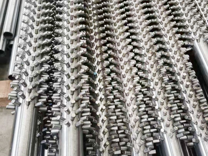 釘頭管(針型管)強化換熱原件是由針形管自動焊機將一系列圓柱形焊接在鋼管表面,其特征是: